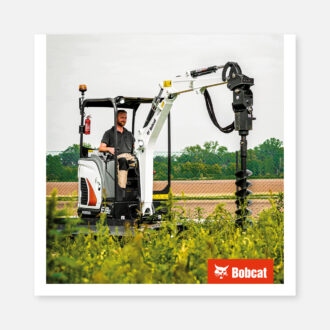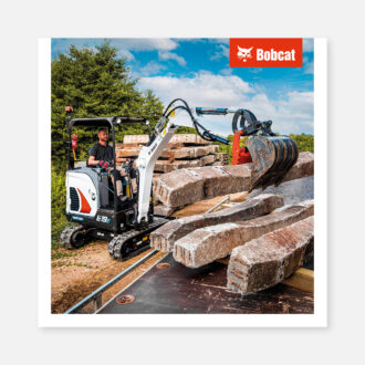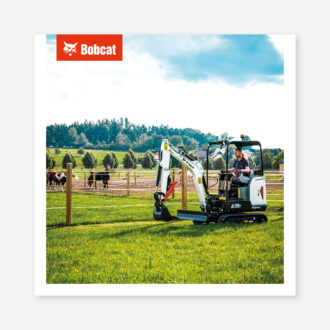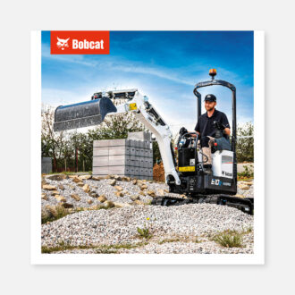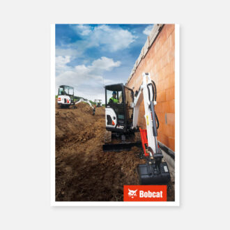 Product poster (PVC) – E20 miniexcavator at a construction site