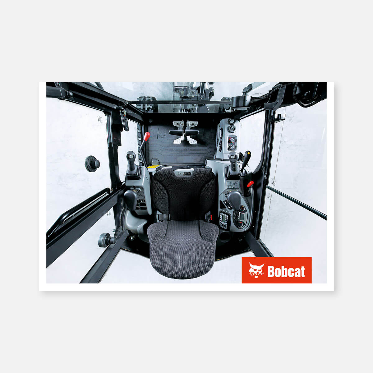 Product poster with a view inside of the cabin of miniexcavator, printed directly on PVC panel (with or without a frame)